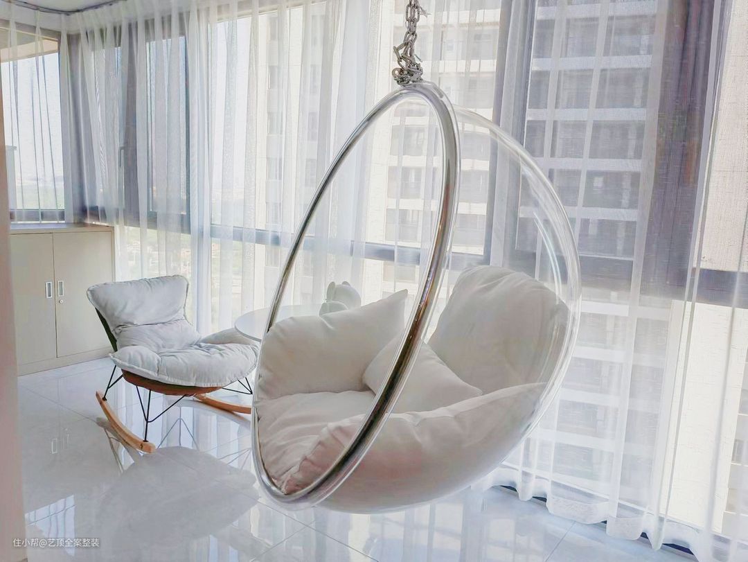 网红玻璃吊椅+懒人休息椅,整体打造度假风味