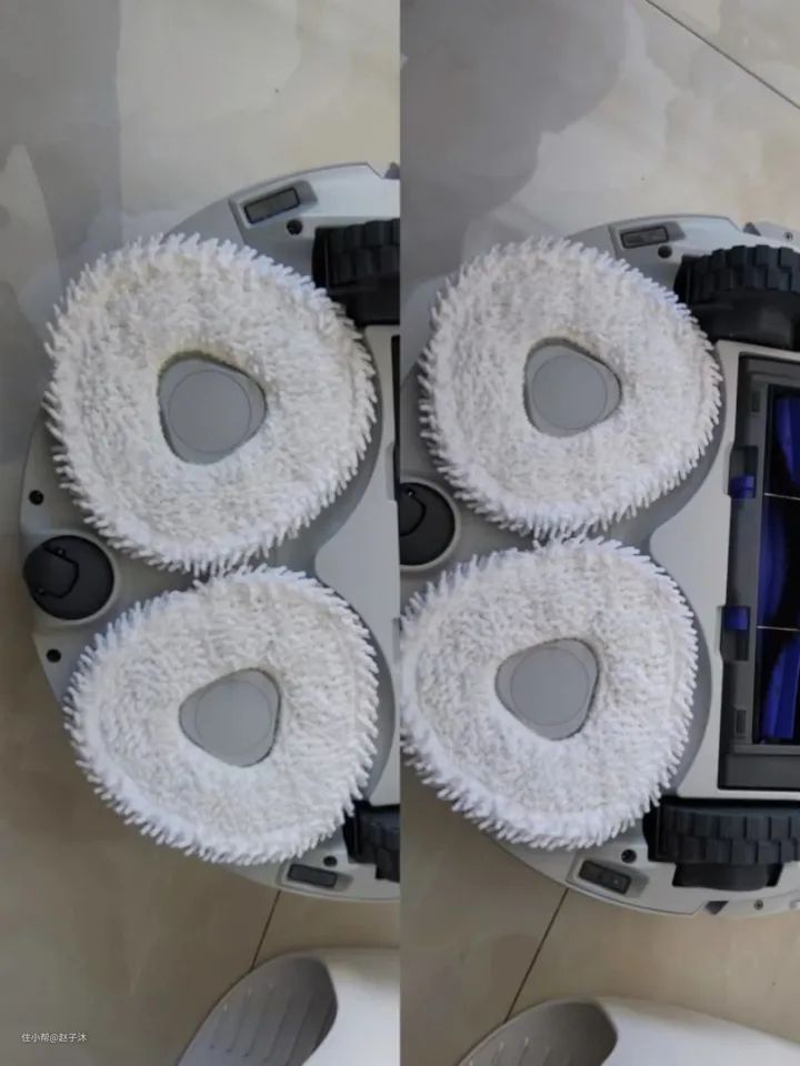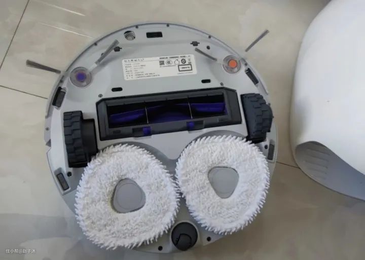 而且扫地机器人也改为了拖扫一体设计,这个功能是真的绝。它的扫拖模块会自动切换抬升。