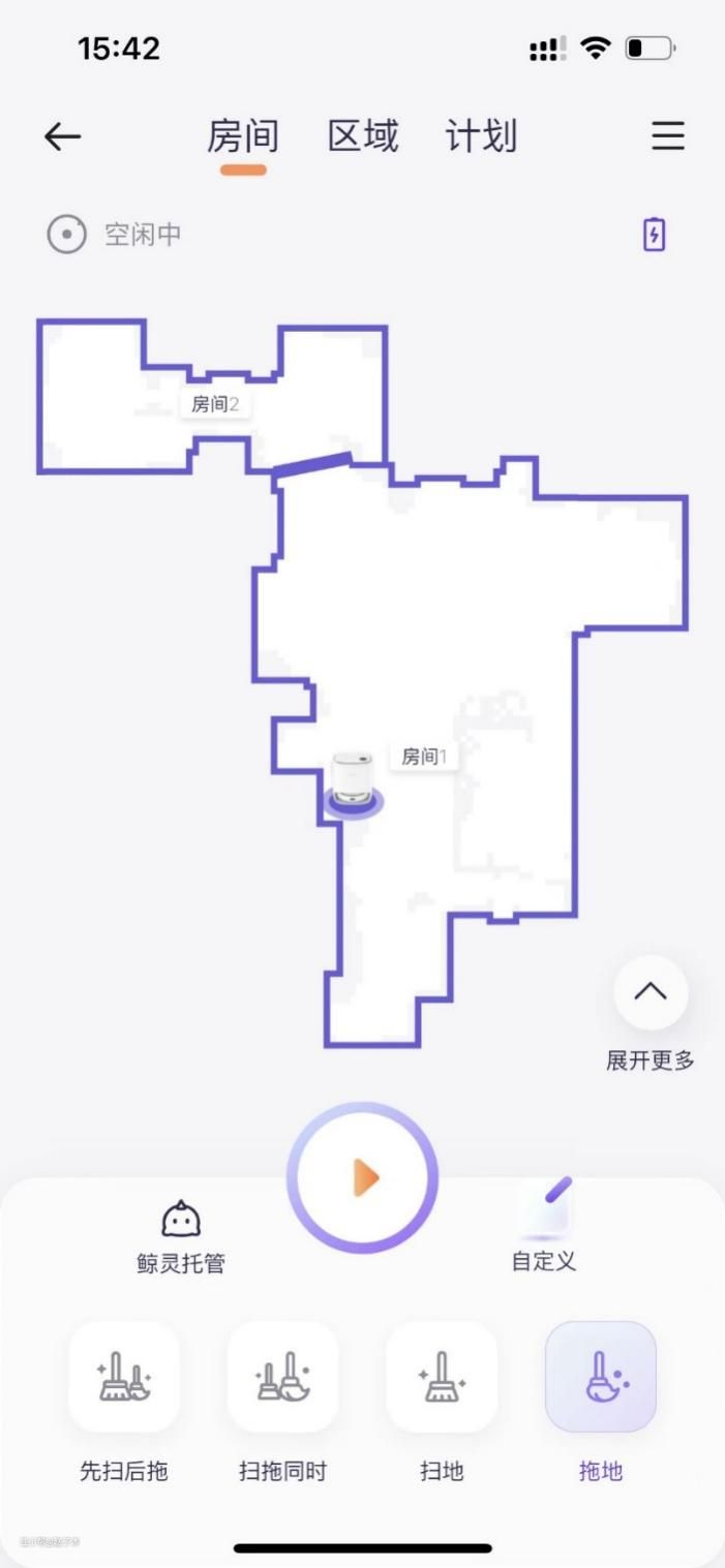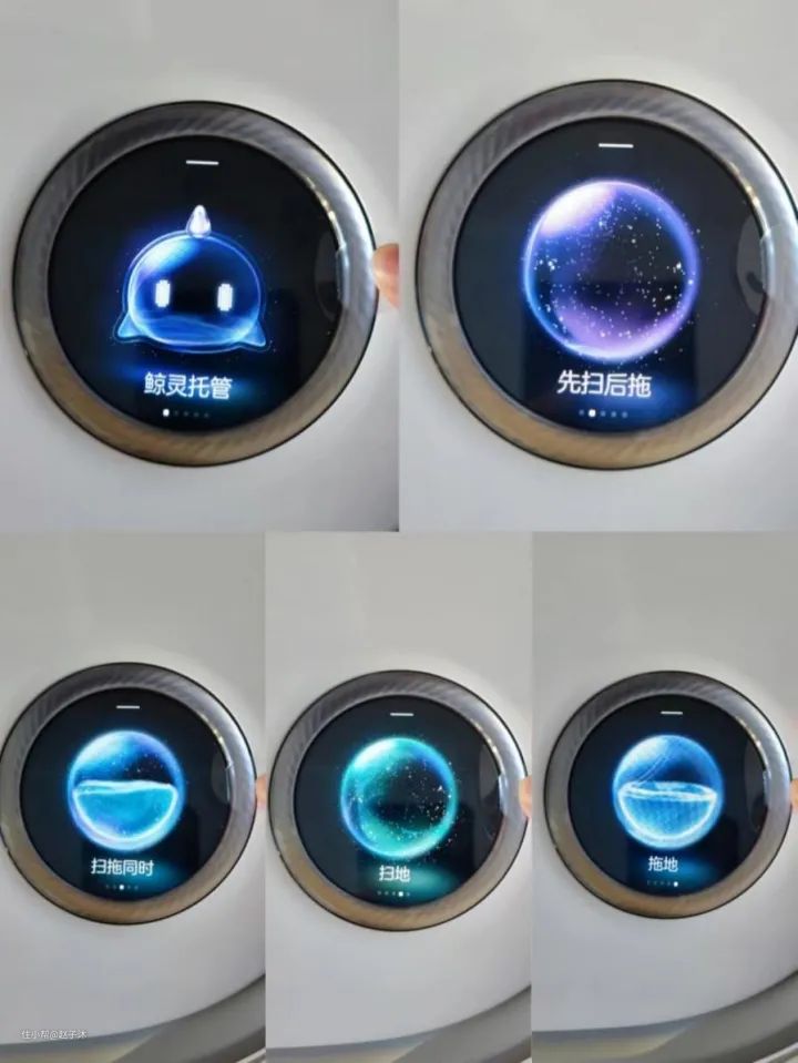 不仅设计操作方便了不少,而且还有多种模式可以选择,如:鲸灵托管、先扫后拖和扫拖同时进行、单扫、单拖等五种清洁模式,每一种还相互不影响。
