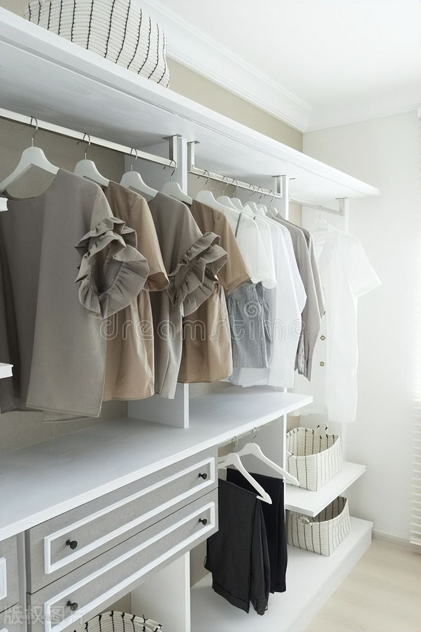 挂衣区高度:短衣区为900mm—1200mm,长衣区为1300mm—1500mm,挂衣杆距离地面高度最好不要超过1800mm,挂衣杆距离上层板的距离为60mm,宽度视柜体宽度和需求而定。