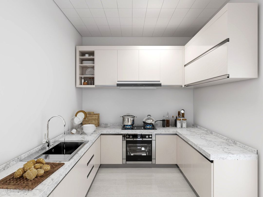 厨房地柜尺寸为60公分,确保水槽和燃气灶的正常安装,也可以有35公分左右的窄柜