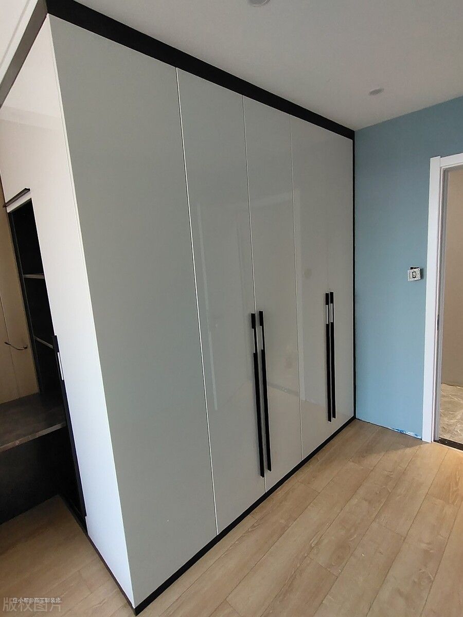 欧松板和颗粒板的稳定性比较好,不容易弯曲变形,比较适合做衣柜柜门。