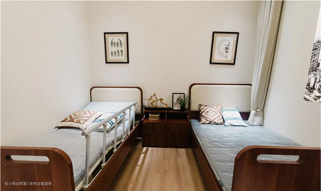 老人房不适合过于繁复的设计,会带来压抑感,但通风透气采光一定要好。老年人的行动不是很便利,活动空间广阔、无障碍,会更加安全,最好可以有把手助力。从入室到客餐厅、厨房、卧室等每个空间,都要保持一个平面,全部要无阻碍。有的老人需要坐轮椅,就更需要设置无障碍的一些动线。