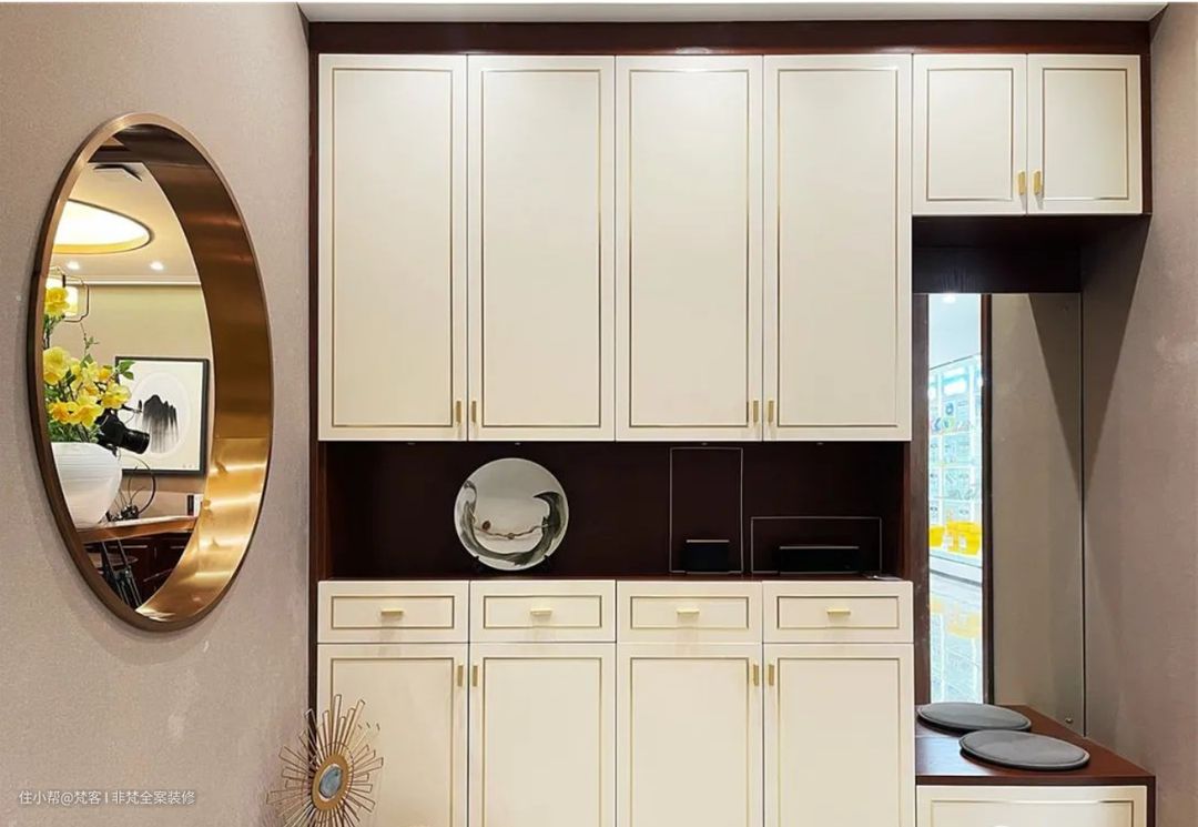 - 门厅要特别设置鞋柜、储物柜,可以依据空间大小整体定制,预留换鞋凳、坐起助力扶手,方便又好用。鞋柜附近设计储物空间,方便买菜回来小拉车的存放。