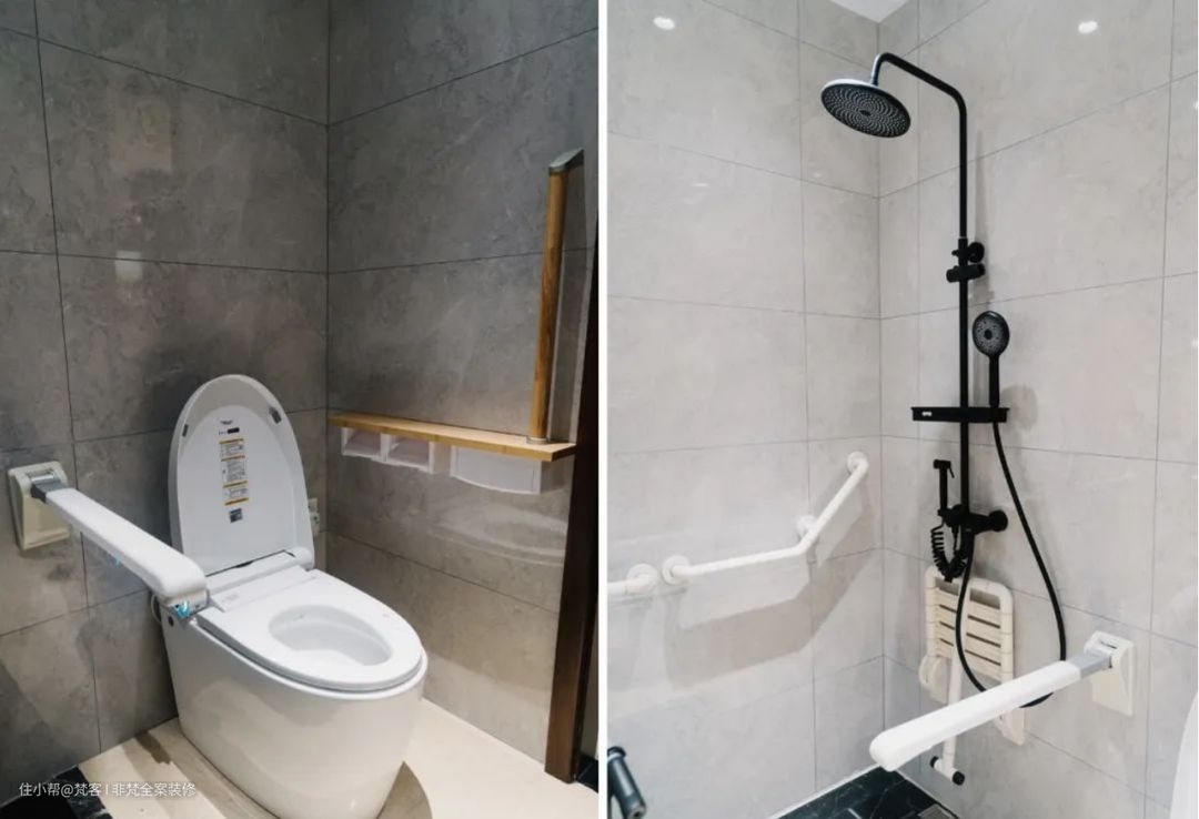 - 马桶、淋浴两侧安装扶手,方便老人起身借力