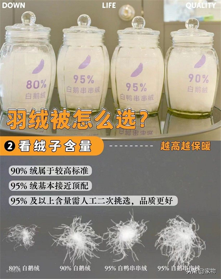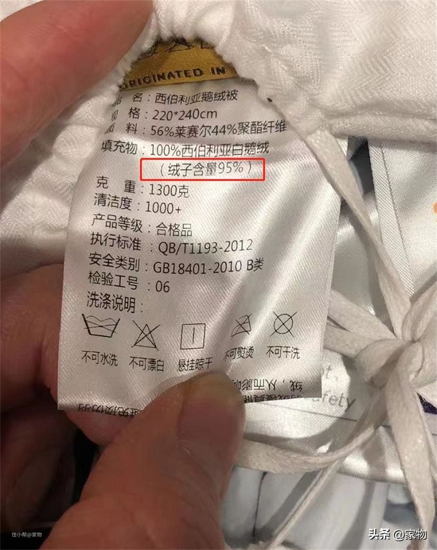 建议大家在选羽绒被时,注意看水洗唛上标注的绒子含量,不要只看含绒量。