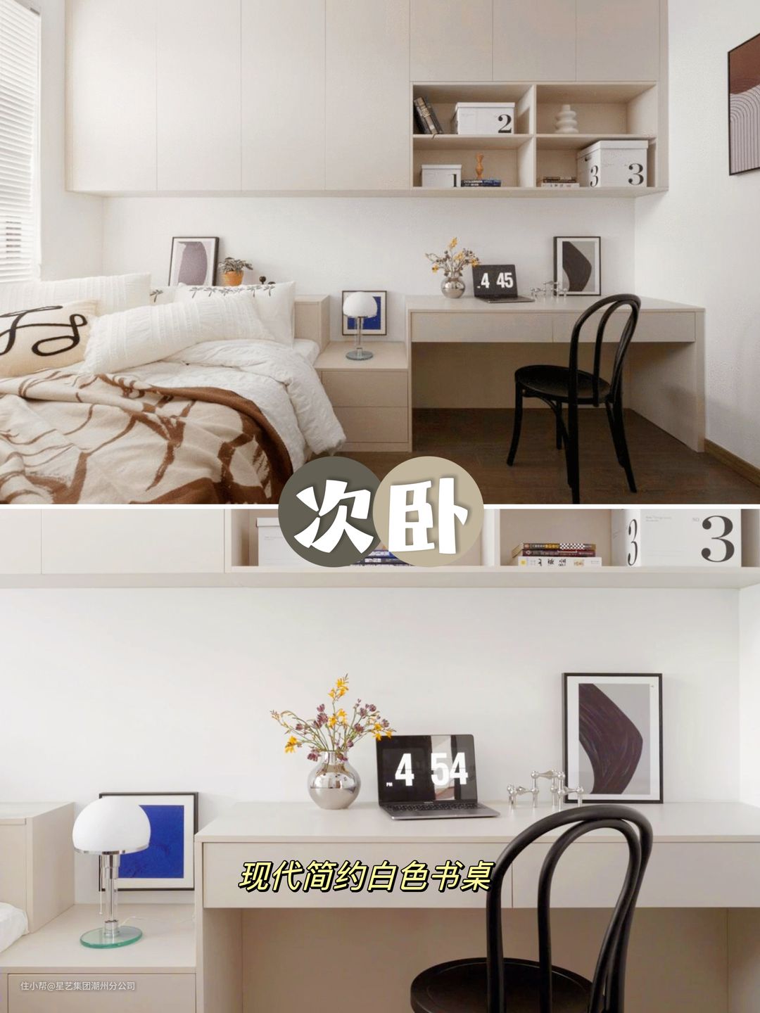 🔸次卧是兼备了办公区域的,白色的空间~