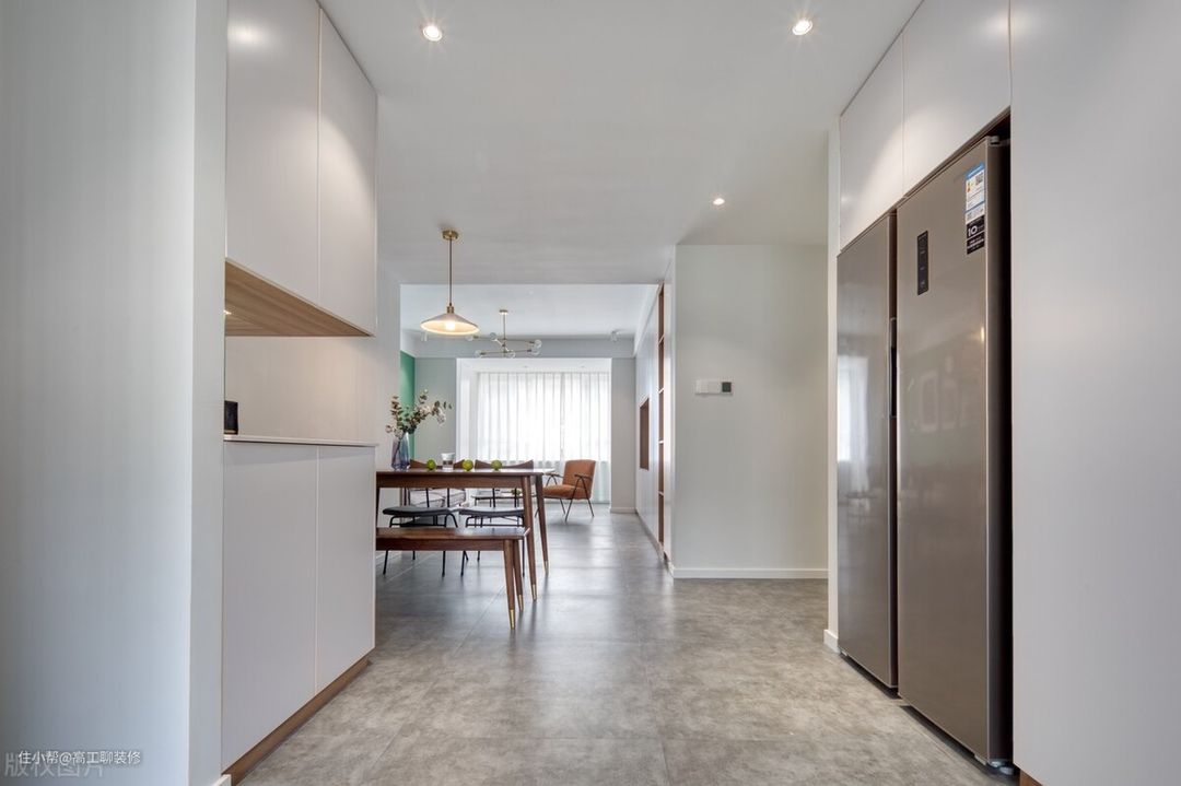 地砖是高光的,避免天花波浪光,那照明的地方就可以选择筒灯。