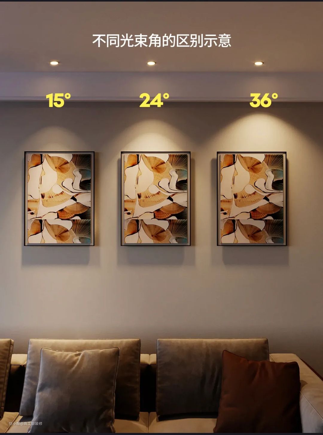 射灯:光束角越小越聚光,孔深也不用担心影响防眩,射灯具备了防眩杯设计,所以达到比较不错的效果。