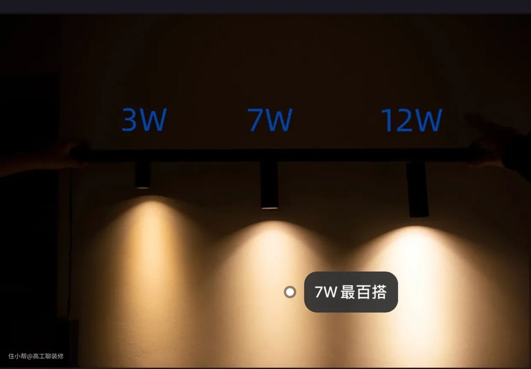 射灯考虑洗墙效果选6—9W,照明筒灯考虑9—12W
