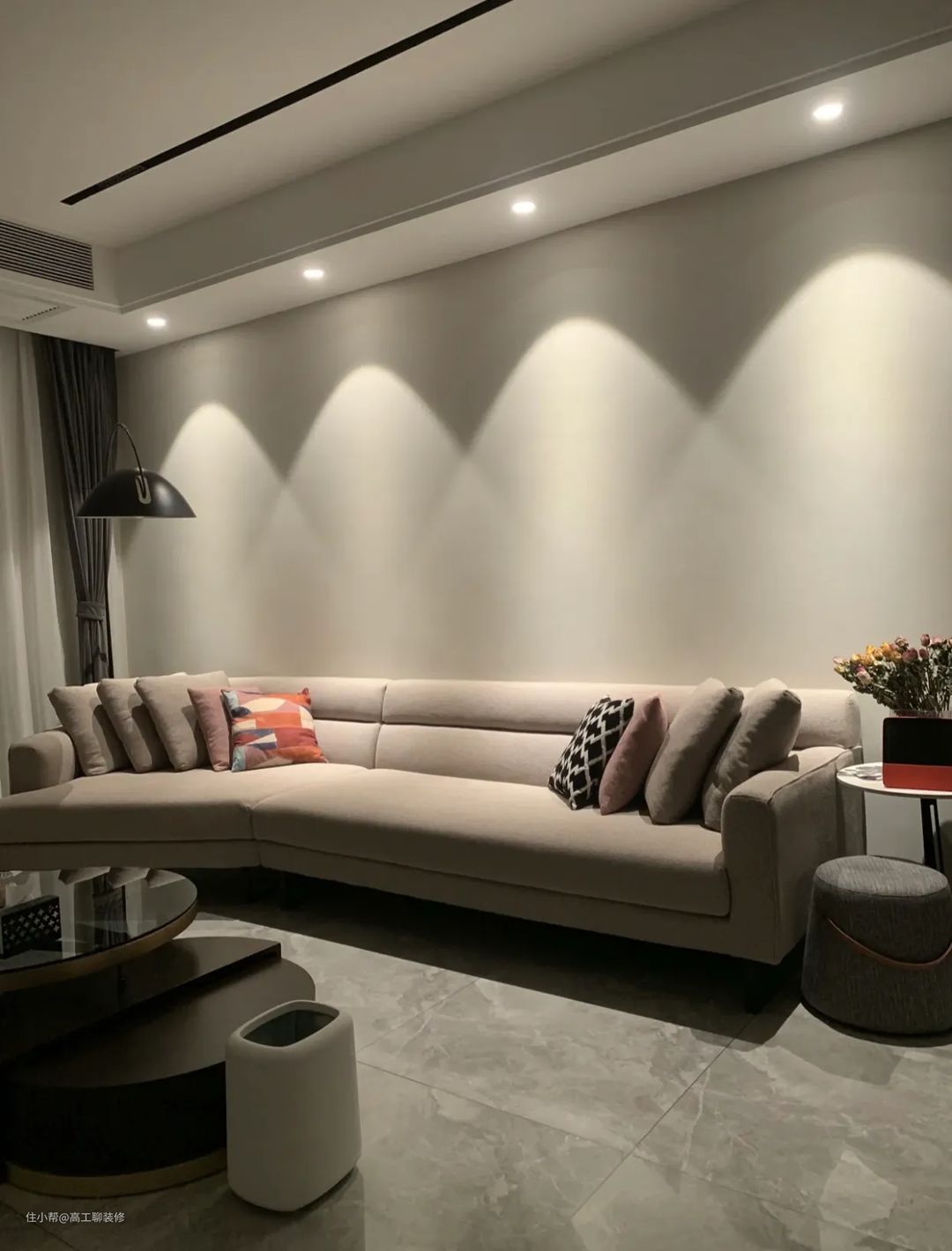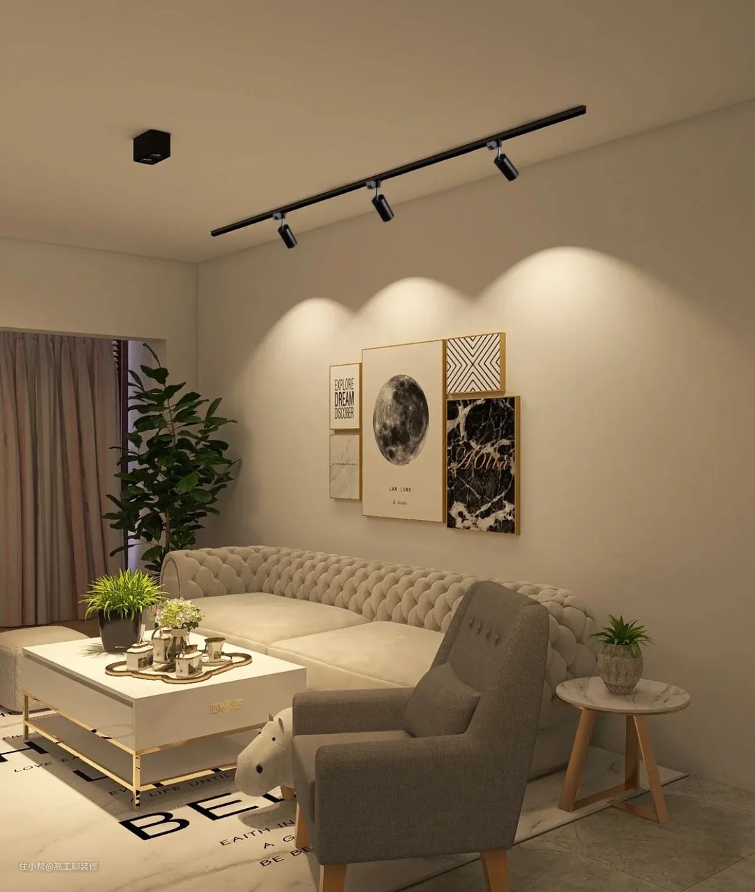 射灯是典型的无主灯,没有定规模的现代流派照明,射灯的光线柔和,能够营造室内照明氛围,也能做局部采光,还可以自由组合变换角度,照明效果比较灵活。