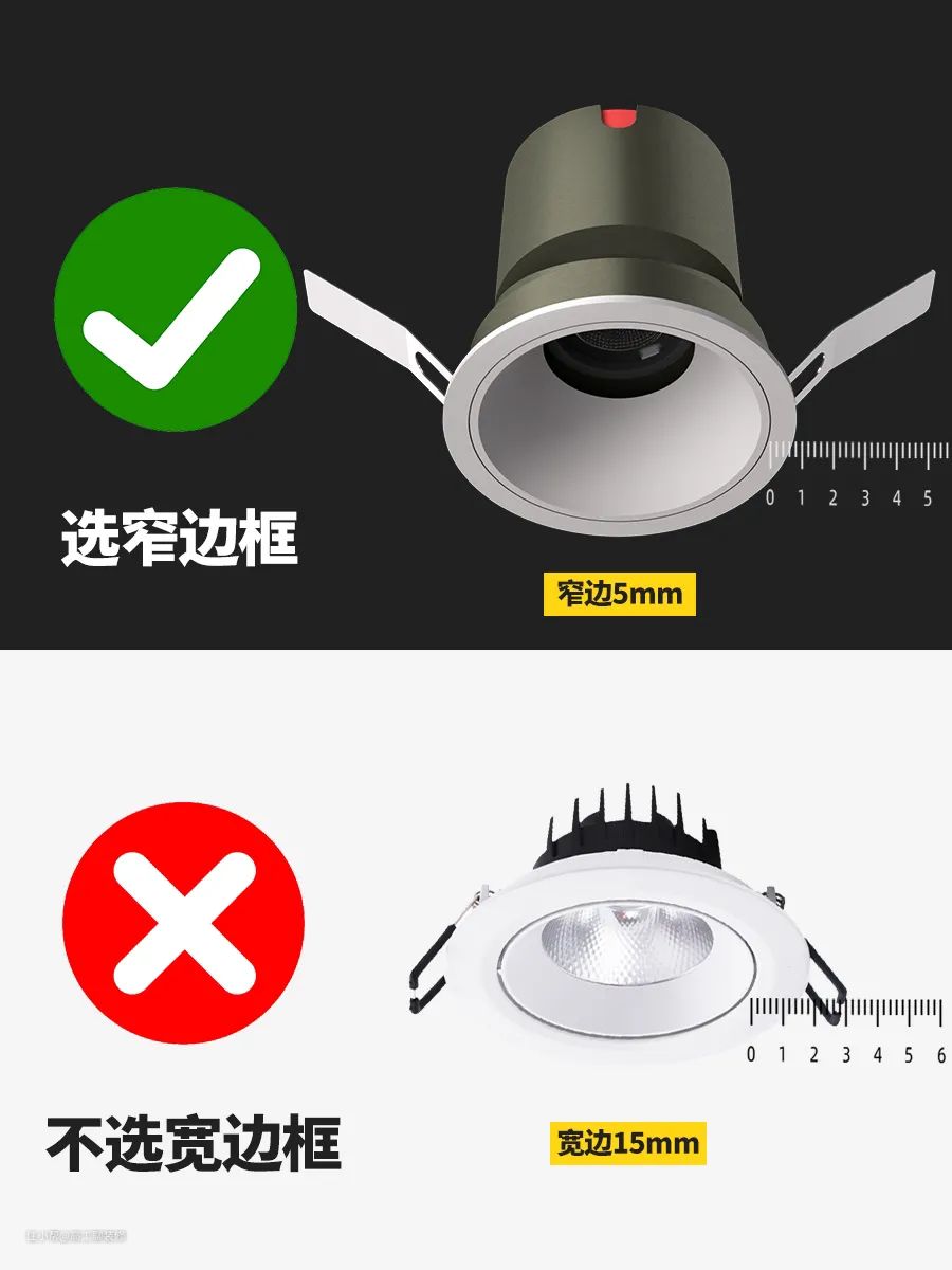窄边框的灯,安装在天花板上美观出效果,边框尺寸建议6mm,超过10mm就不建议考虑了。