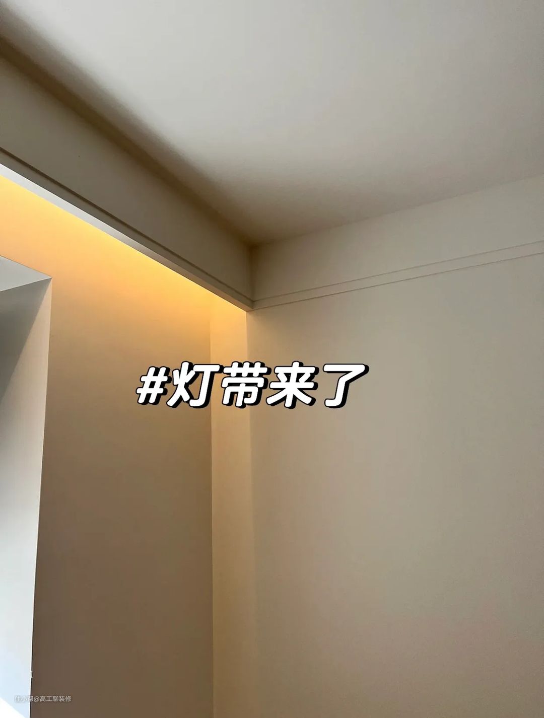 灯带一般隐藏在吊顶、墙面或者地面、常常用来勾勒空间的轮廓,是典型的见光不见灯,像家里的背景墙上方,窗帘盒里还有镜柜里、玻璃柜门的餐边柜里都可以安装,主要是起到氛围的光照效果,如果你家户型很小,可以考虑灯带。