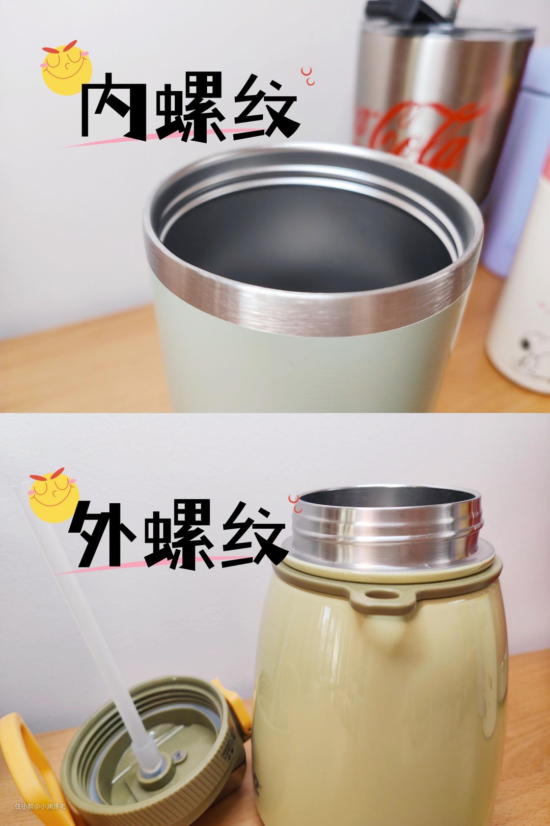 ②瓶口的螺纹,这一点一开始我没想到,后来翻阅了资料才知道。螺纹与杯盖的接触面积最大,而且没有保温设计(不是真空或中空的),最容易散热。