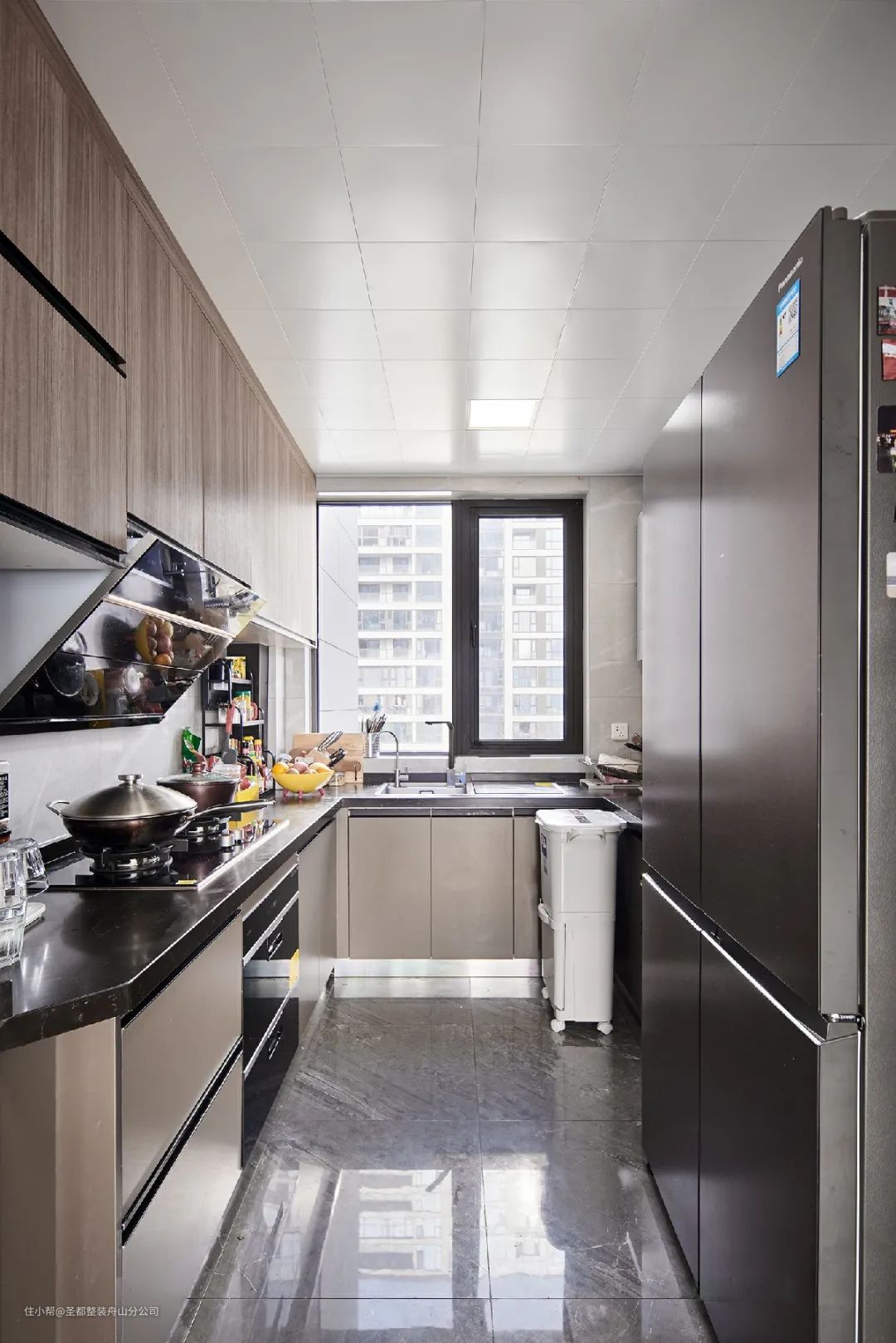 1.厨房空间较小可以在餐厅西墙位置放置冰箱,高柜(放蒸烤箱)加部分台面一体,做成中西厨形式增加厨房的功能性,餐桌可加长增加岛台,优化美观和功能