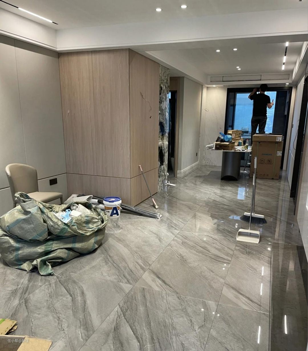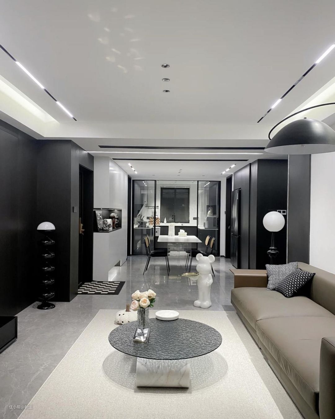 全屋通铺瓷砖是个好主意,无主灯是个好设计!