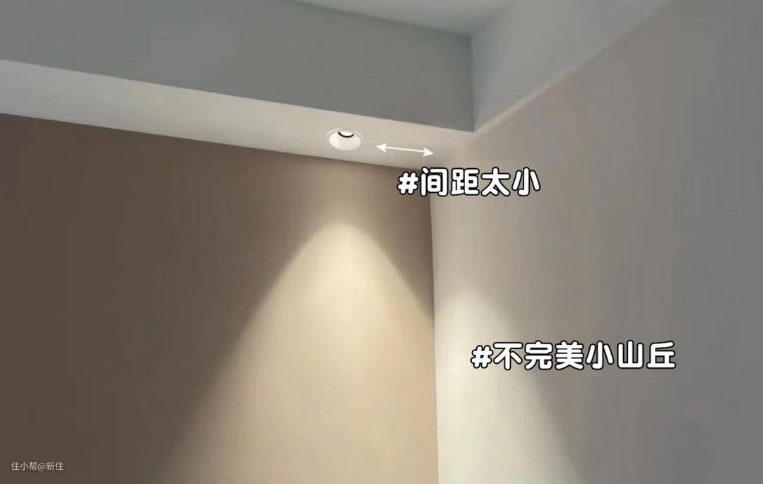 反之,如果我们墙面没找平,本来没灯,可能根本就看不出墙面的凹凸不平,这一下射灯一打,墙面坑坑洼洼暴露无遗,着实不好看。