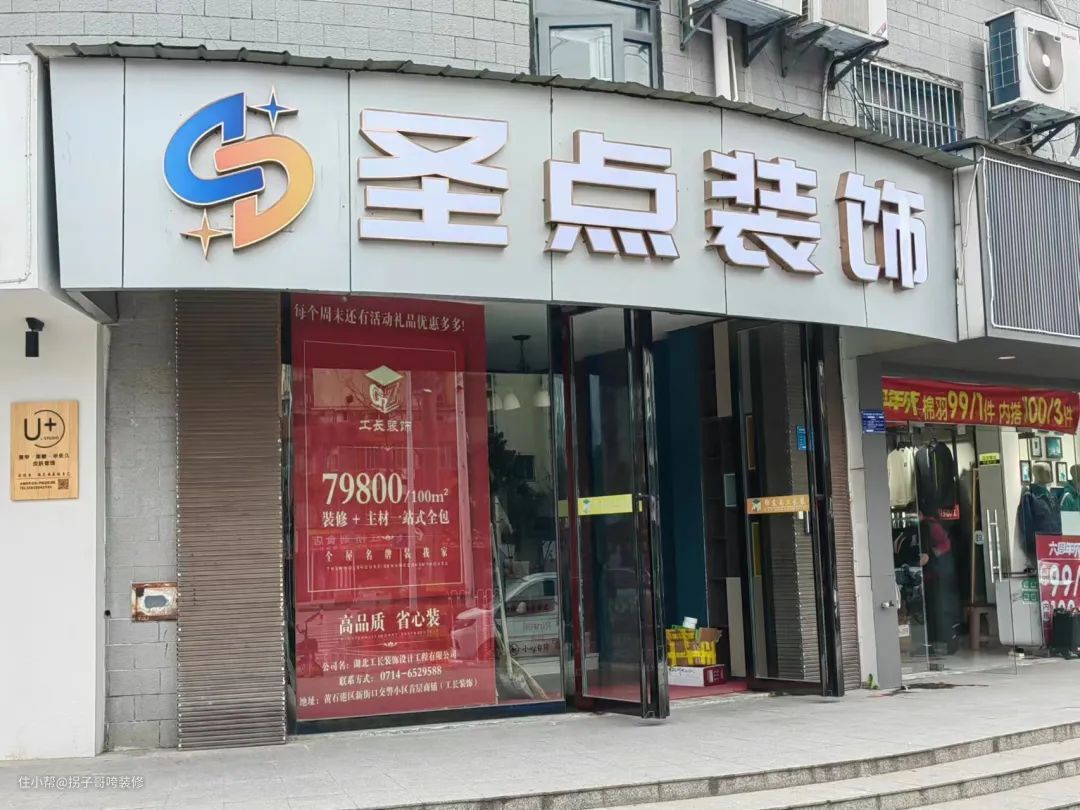 近期有圈友跟圈哥反馈,位于黄石新街口的工长装饰的门头广告招牌全部变换成了圣点装饰并发了一张图片给圈哥。