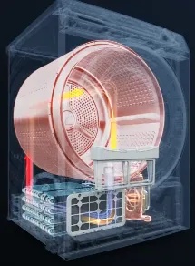 烘干机:烘干10kg、1:1正反转、双擎热泵烘干、Hybrid混动加热、四层线屑过滤器