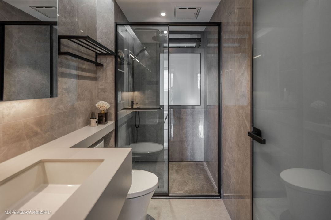 二、油砂玻璃自带磨砂效果,一层就能做到透光不透人,不管是灰色还是黑色,颜值都很在线,记得要把油砂面朝外。