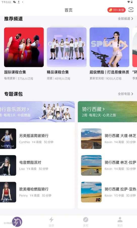 APP中每天都有直播课程,此外,还有国际课程合集、COS派对娱乐主题和各种风格的专题课包。可以通过APP线上骑行玉溪、西藏,也可以通过专题课包进行形体塑造和角色扮演娱乐骑行。