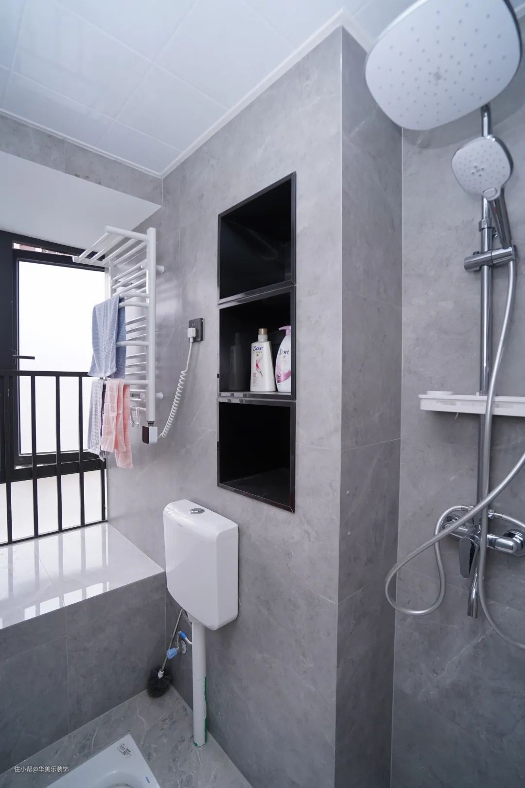 还做了壁龛,非常实用,增加了收纳空间,方便放一些小物品、洗漱用品,不至于让整个空间过于凌乱,尤其适合一些空间有限的地方。