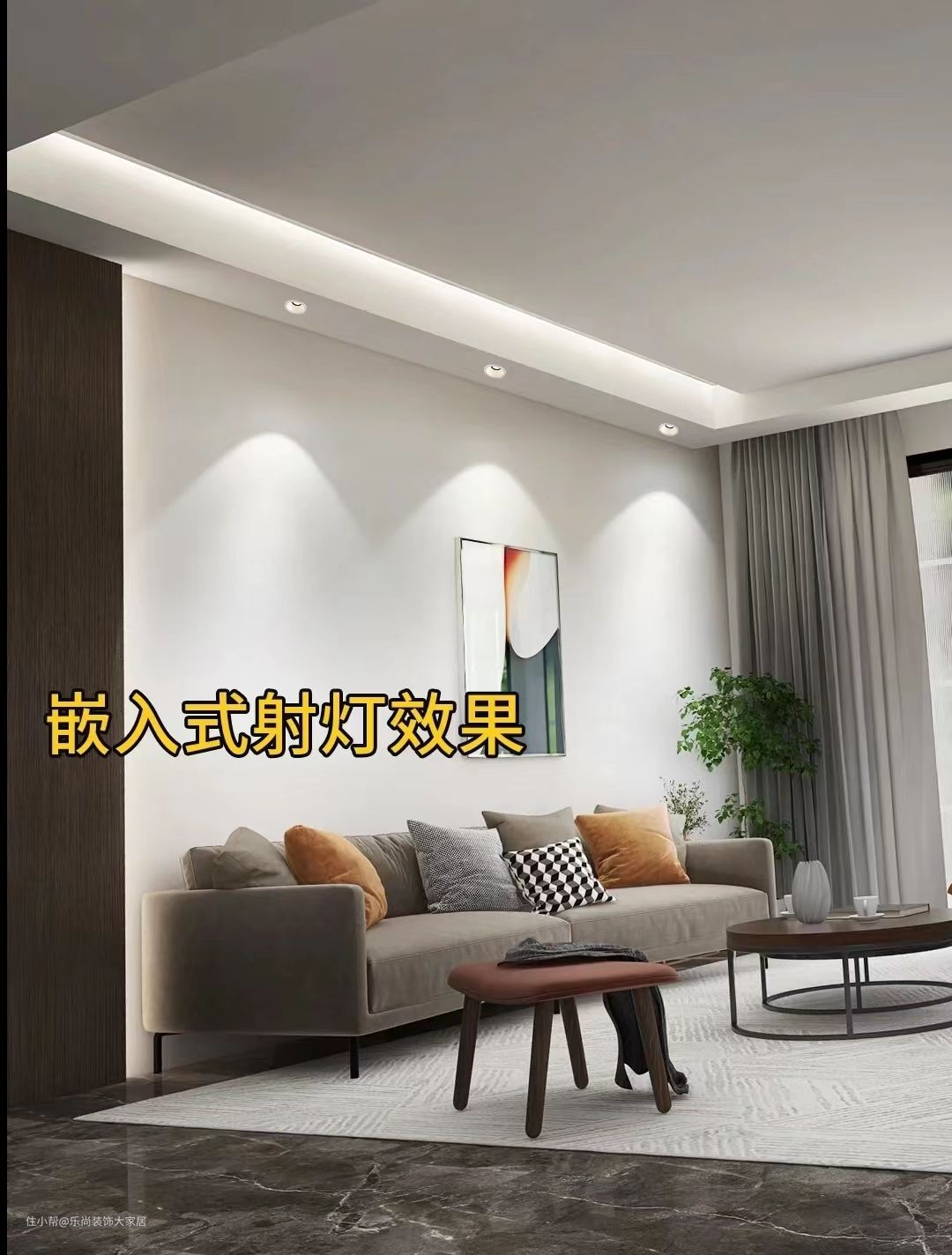其实筒灯与射灯的区别就在于筒灯是基础照明,而射灯是重点照明灯光,想要层次感分明就选无主灯。