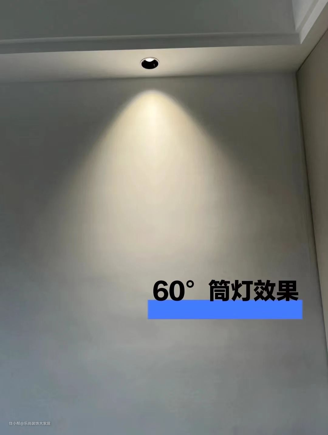 60°:中心淡化,照明面积较大,光弧不明显,基础照明均匀补光,常用在过道、厨房、卫生间。