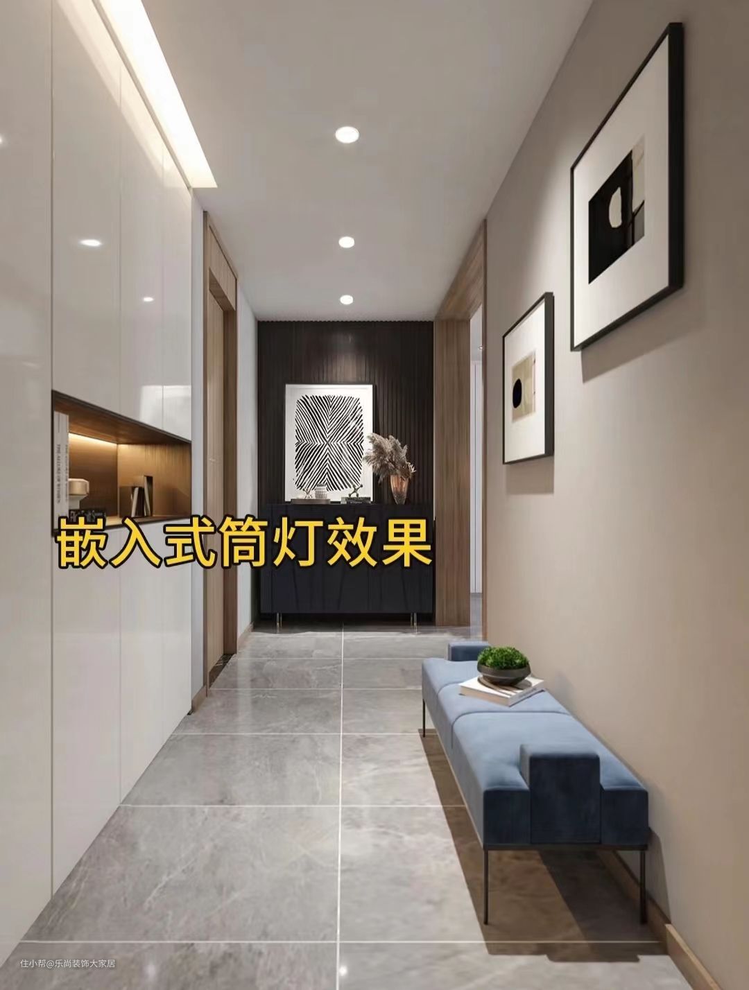 筒灯:一般是平面光源,泛光类灯具做基础照明,整体空间会更加明亮,常常用在客厅、过道、阳台等。