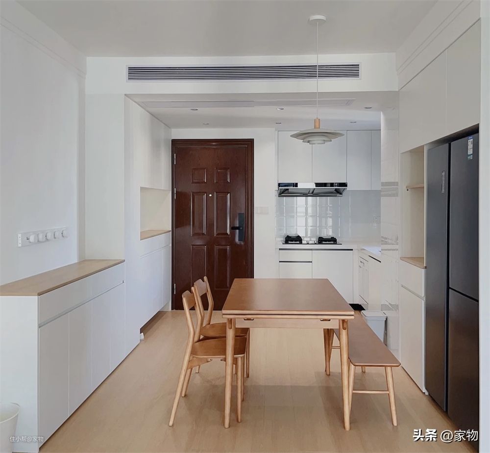 这位姑娘将厨房和餐厅间的隔断打通,利用一进门4㎡的角落,把厨房做成了开放式格局,同时容纳厨房和餐厅空间,让室内更显通透明快!话不多说,一起来看看吧~