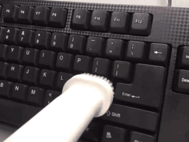 笔者发现毛刷头还是键盘的救星,键盘清洁一直是笔者很头痛的一个工作,密密麻麻的缝隙清洁起来很费时,总是等到看不下去时才用棉签耗大量时间清洁,有一个随手吸尘器可以随手往键盘上吸,这样灰尘就不会积攒。而且毛刷吸头的软毛还可以边扫边吸,清洁键盘效率更高。