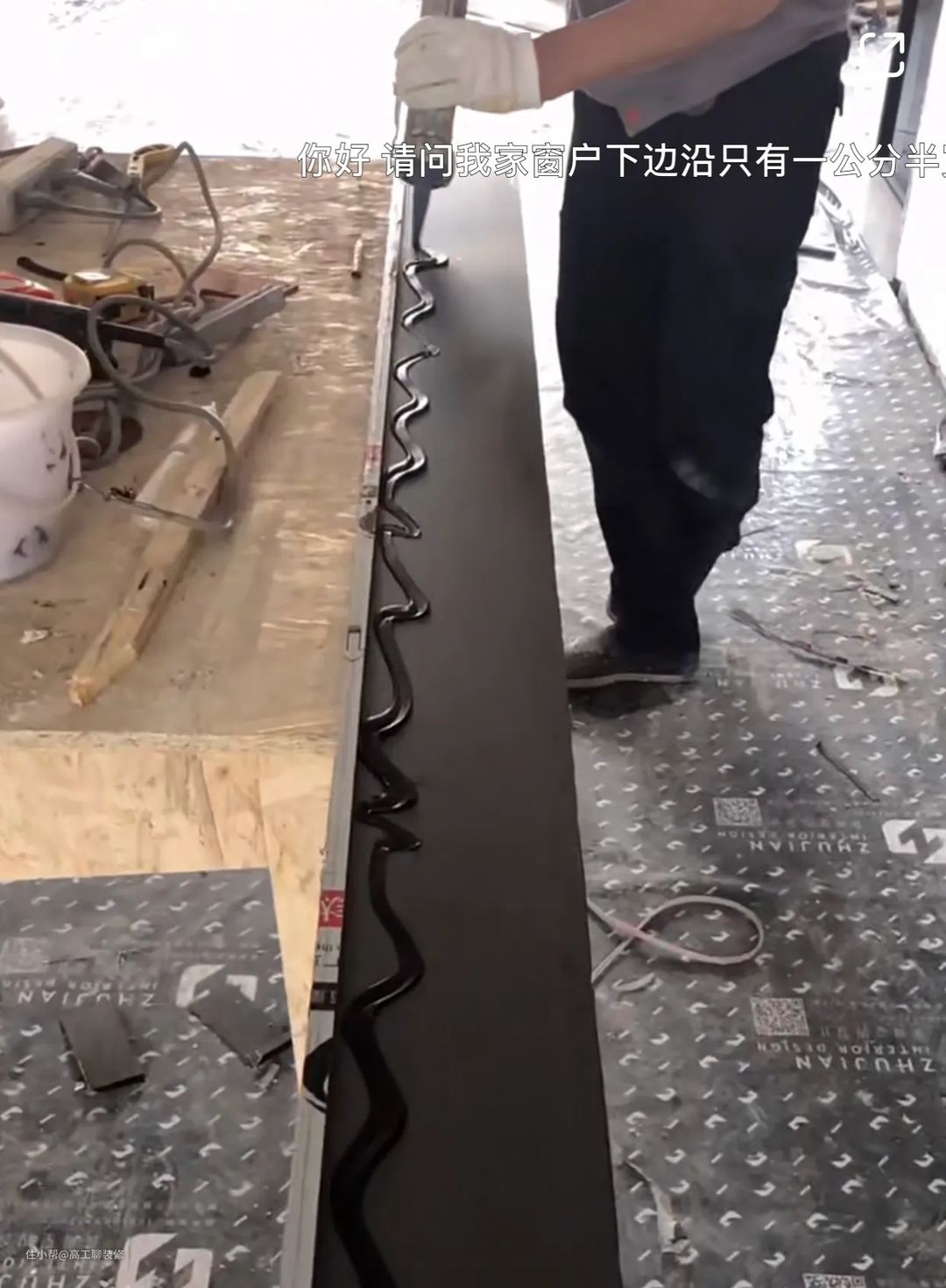b、不锈钢材质的窗套要的是那种极窄的效果,所以用钢钉固定的时候,还是要小心,不然容易把材质变形,真的很影响安装后的效果。