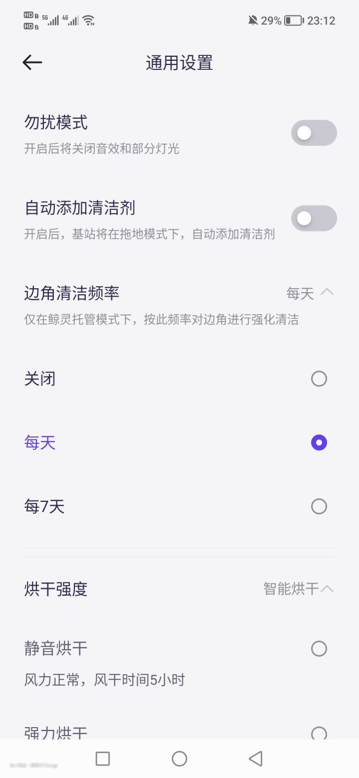 我们需要在设置界面把边角清洁频率的时间调整成“每天”,这样子每天第一次开启鲸灵托管的时候,J3就可以进行边角强化清洁。