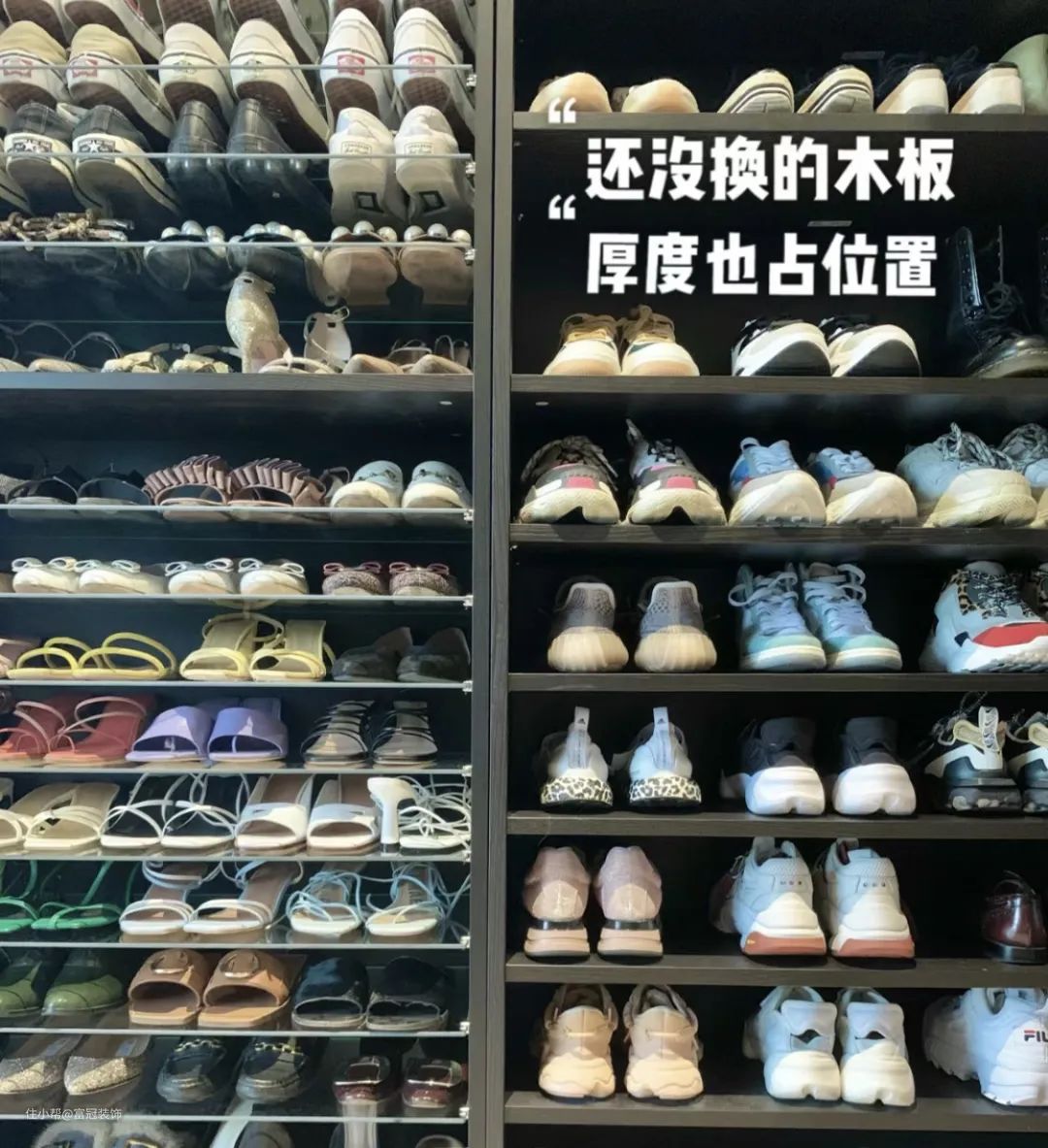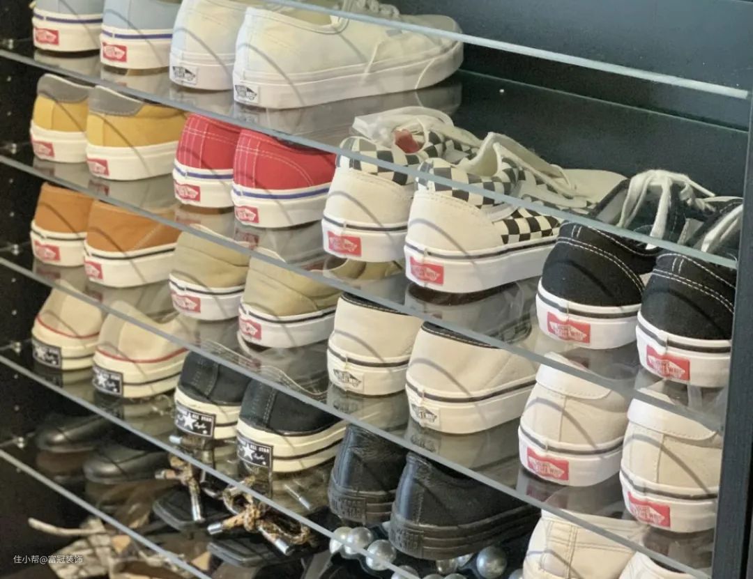 把层板换成玻璃或者亚克力材质,减少层压板占用的空间,并存放多双鞋。
