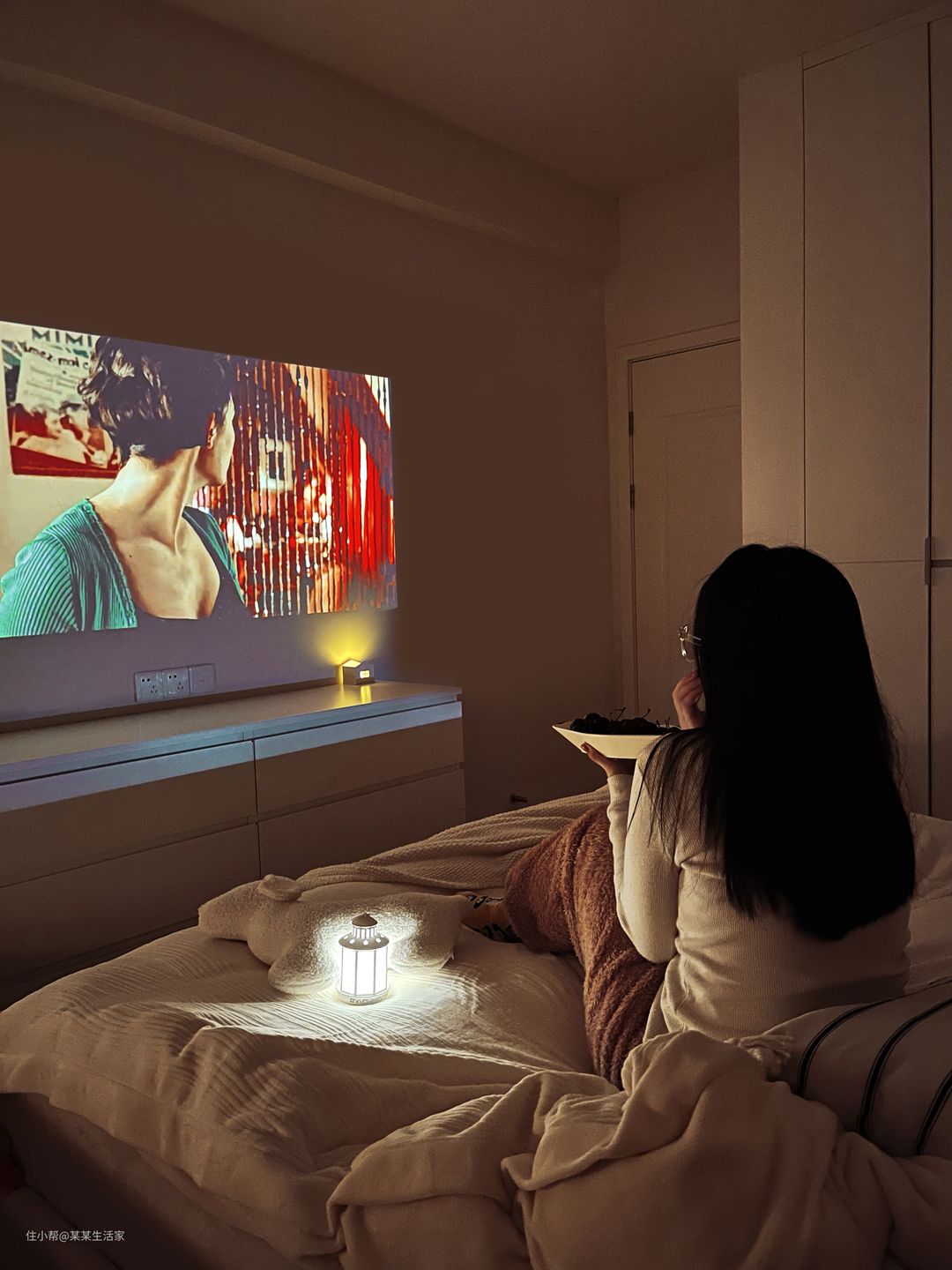 所以,如果你的卧室空间并不是很大,但又想拥有休闲娱乐的功能,那么投影仪会比电视更合适。