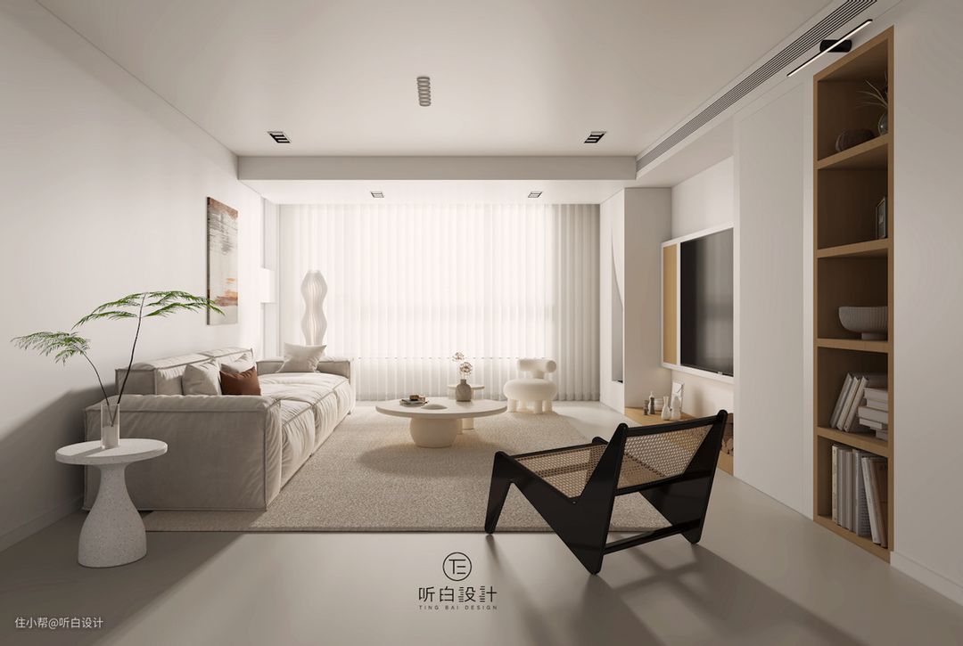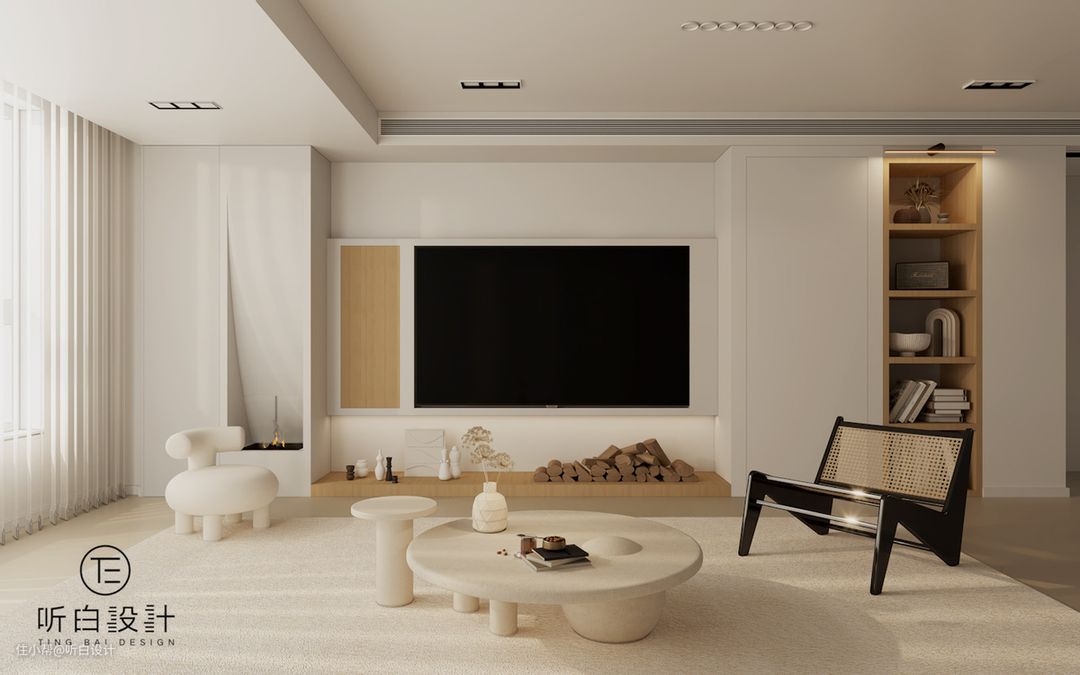 本案设计是暖调居家的日式风格,暖白色和浅木色相搭配,奠定整套设计中居家温馨的浪漫基调。