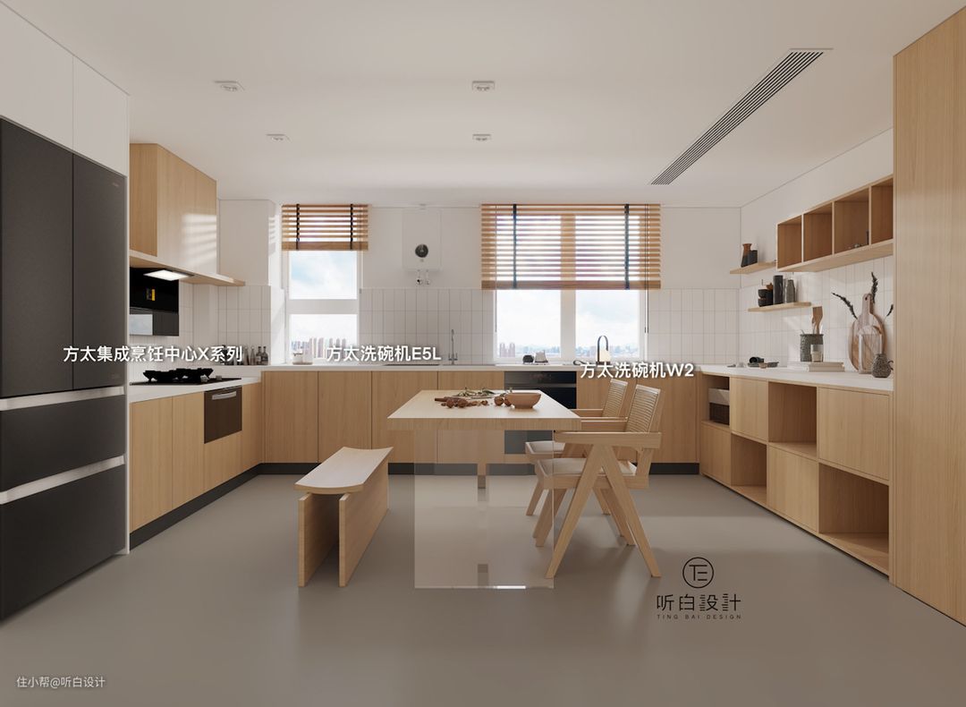 华日我们询问了身边很多烹饪爱好者,也去了解了我们做了开放式厨房的客户的使用感受,他们给予我们真实反馈,这次项目我们精心挑选方太集成烹饪中心X系列和水槽洗碗机E5L以及嵌入式洗碗机W2完成厨电规划。
