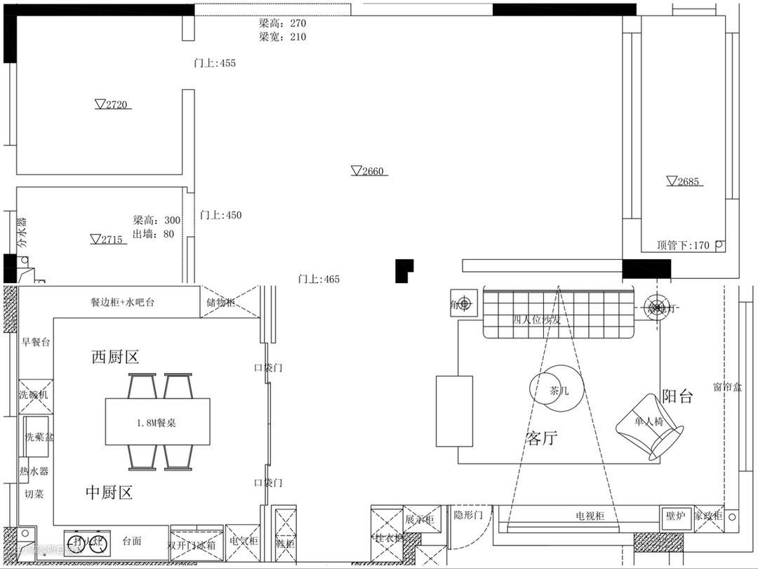 - 小姐姐想要开放式厨房,又担心油烟,静音,整洁的问题