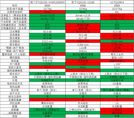 很多粉丝不知道怎么看图,底色标绿的表示单项优秀,白色打底的表示中规中矩,底色红色的表示单项对比欠佳。但是也不是绿色多就好,各个品类的电器还是要看各功能的权重,我没有统一做权重表,大家自己心中去权衡吧。