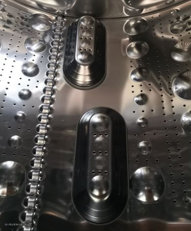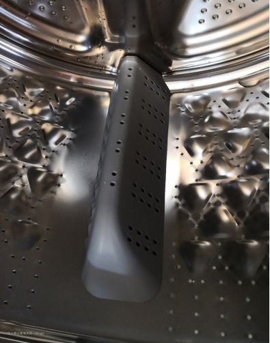 LG的提起器是与内桶一体的,避免了夹缝藏污,并且错落有致,在烘干时更利于衣物舒展,这点和隔热玻璃梯度设计有异曲同工之妙。