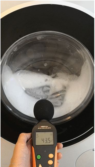 洗涤时西门子的噪音表现是最优秀的,当时测试的背景噪音为43dB左右,我坐在西门子洗衣机旁边,不注意听,几乎感觉不到其运行。