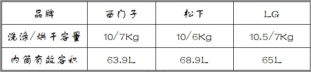 结论分析:在参与测试的三款合资洗烘一体机中,相对而言松下内筒有效容积最大,其次是LG,最后是西门子。没想到吧,居然是标称洗涤/烘干容量相对最小的松下洗衣机内筒有效容积最大。