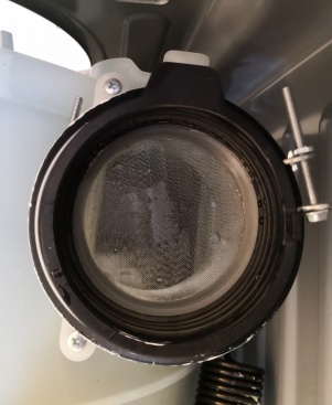 上图是松下的绒毛过滤网,安装在筒和风机的连接处(靠上),主要是防止烘干过程中产生的绒毛被吸入到风机中,最新一代的松下机型还在这里加装了独立水路和高压喷头,能够对蓄积在这里的毛屑进行冲洗。