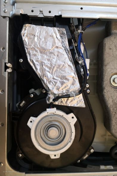 松下采用的是京马的直流无刷电机,塑料风道,外壳用了许多锡箔隔热棉。