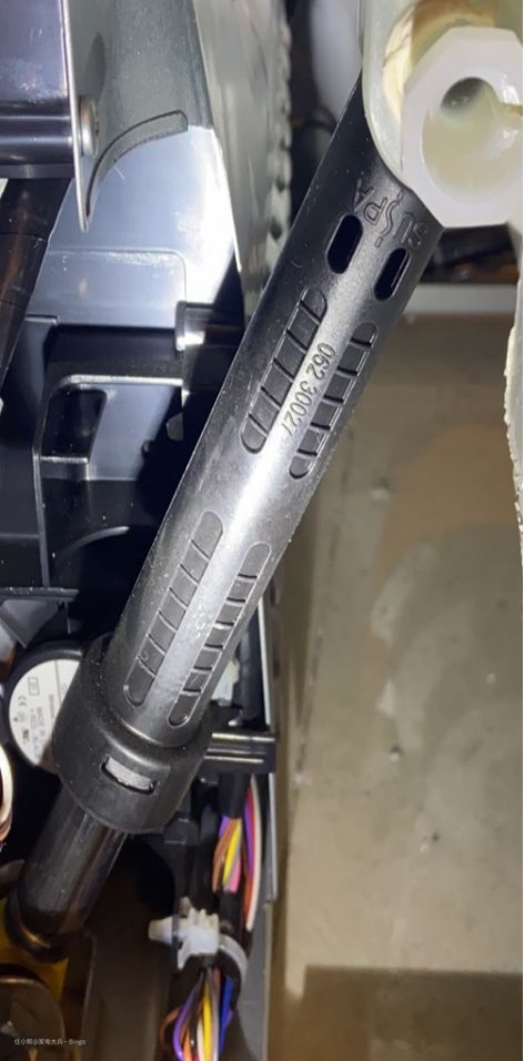 松下和LG的排水口都是上图这种从洗衣机下方伸出的类型,外部的排水管需要由下至上固定在洗衣机背面,才能确保洗衣机正常工作。