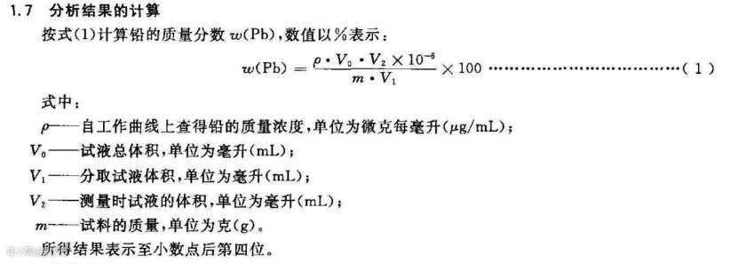 严格按照国标GB/T5121.3-2008关于铅含量测定的标准,利用塞曼效应电热原子吸收光谱法进行测定。