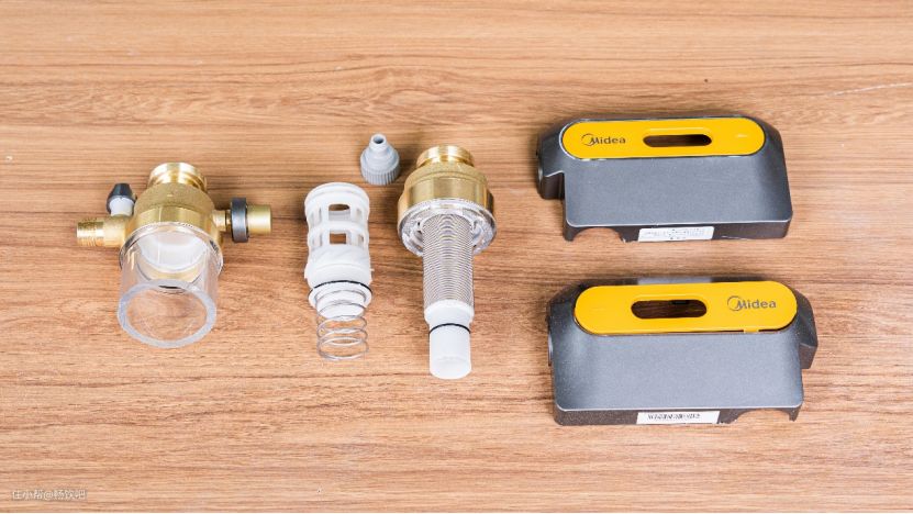 首先美的前置过滤器的外壳是用卡扣扣住的,耗费了巨大的力气,才将它的外壳拆下来。