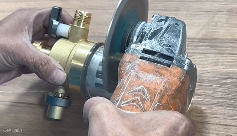 本以为能够轻松将滤瓶的铜头拧开,结果美的前置过滤器的铜头几乎拧不开。没办法,为了拆开卡扣里边滤网二氧化硅的残留量,我只能用电锯将滤瓶锯开了。