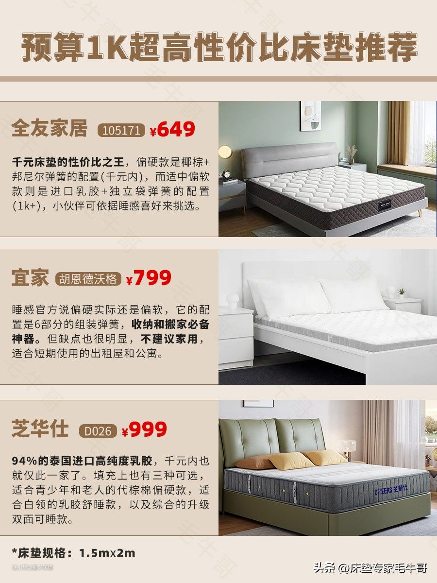 “老婆只给了3千预算买床垫,毛牛哥快帮我推荐推荐!”
