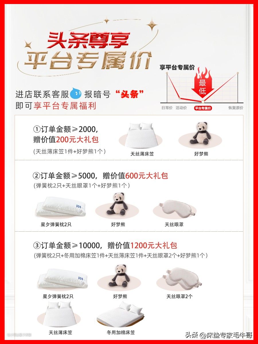 您若信得过毛牛哥,可以去我的 店铺“星夕床垫品牌店”看看,联系客服报暗号“头条”,即可享受如下福利: